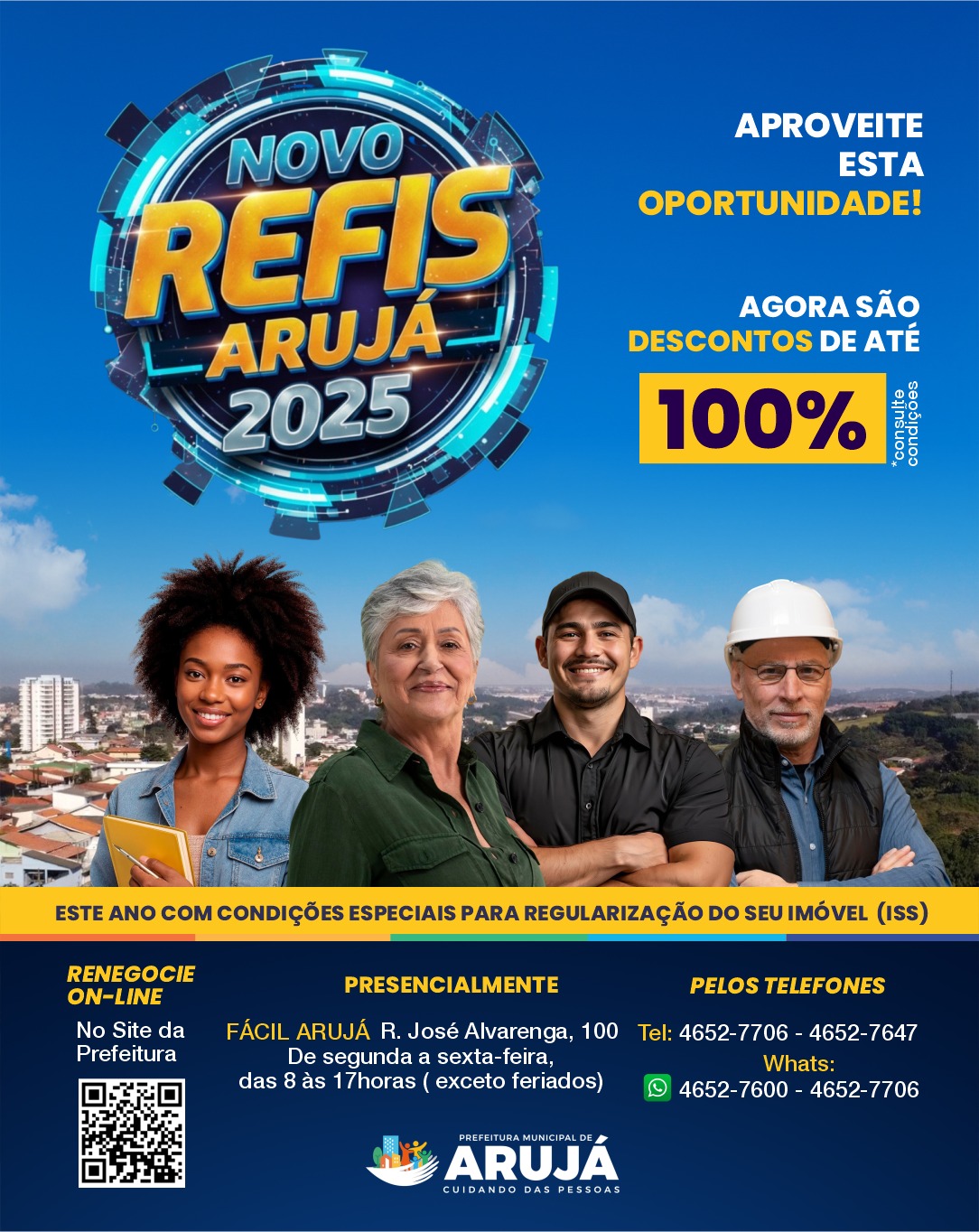 É uma oportunidade para que o munícipe possa regularizar seus débitos com a Prefeitura, em até 36 parcelas, e contribuir com a manutenção dos investimentos na cidade.